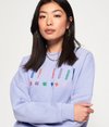 Superdry Carly Carnival Sweatshirt mit Stickerei und Rundhalsausschnitt für Damen. Dieses langärmelige Sweatshirt mit Rundhalsausschnitt ist mit einem superweichen Futter und einem aufgestickten Superdry Logo auf der Brust versehen. Ärmelbündchen, Kragen und Saum sind gerippt. Das Modell ist am Saum mit einem Superdry Logoetikett versehen.