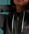 Superdry Kapuzenjacke für Damen aus der Orange Label Kollektion. Eine Kapuzenjacke mit Reißverschluss und einer Kapuze mit Tunnelzug, einem aufgestickten Superdry Logo auf der Brust und zwei Fronttaschen. Zusätzlich verfügt das Modell über ein Superdry Logoetikett am Ärmelabschluss und die charakteristische orangefarbene Ziernaht an der Seite.