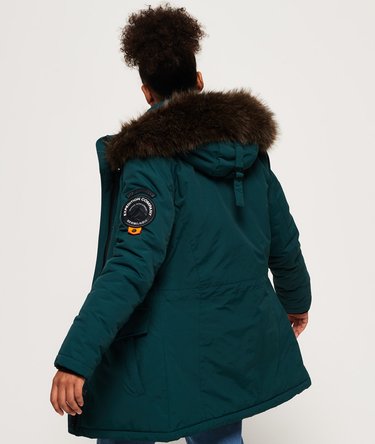 Superdry Ashley Everest Jacke für Damen. Diese Jacke sollte man diese Saison unbedingt haben. Sie ist mit einer abnehmbaren Kapuze mit Fleecefutter und Kunstfellbesatz sowie mit einem verstellbaren Gummizug ausgestattet. Ein Reißverschluss und Druckknöpfe sorgen dafür, dass du warm und trocken bleibst. Dieses praktische Modell weist fünf Außentaschen und eine Innentasche für die sichere Aufbewahrung deiner Wertgegenstände auf. Mit einem Gummizug in der Taille kannst du die Jacke individuell anpassen. Superdry Aufnäher am Ärmel und gerippte Bündchen runden das Design ab.