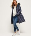 Superdry Chevron Super Fuji Jacke mit Kunstfellbesatz für Damen. Diese gesteppte Jacke hält dich schön warm. Sie verfügt über eine Kapuze mit Fleecefutter und abnehmbarem Kunstfellbesatz, einen Frontreißverschluss mit Druckknöpfen und drei vorderseitige Taschen. Außerdem ist sie mit elastischen Bündchen und einem verstellbaren Gummizug am Saum ausgestattet. Ein gummierter Superdry Logoaufnäher am Ärmel rundet das Design ab.
