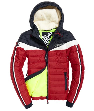 Superdry Fuji Downhill Jacke für Damen. Diese Jacke ist mit einem verstellbaren Gummizug an der Kapuze, einem Reißverschluss und zwei Reißverschlusstaschen auf der Vorderseite ausgestattet. Ein Farbblock-Design, ein Superdry Sport Logoaufnäher auf einem Ärmel und ein reflektierendes Logo auf Brust und Rückseite runden das Design ab. Diese stylishe Jacke sollte in keiner Sportgarderobe fehlen.