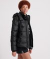 Superdry Koanda Steppjacke für Damen. Diese Steppjacke ist Teil unserer Superdry Sports-Kollektion. Sie verfügt über eine abnehmbare Kapuze mit Kunstfellbesatz, einen Reißverschluss mit Druckknopfleiste, zwei vorderseitige Reißverschlusstaschen und gerippte Ärmelbündchen. Ein Superdry Sport Logo auf der Brust und Superdry Logos an den Reißverschlussschiebern vervollständigen das Design.