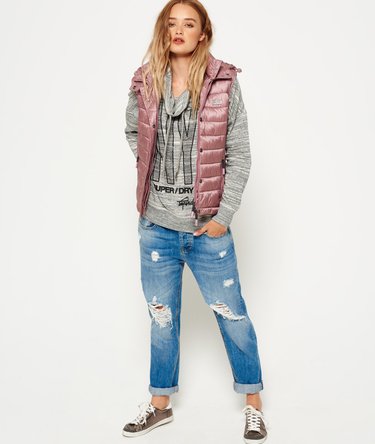 Superdry Luxe Fuji Weste mit Doppelreißverschluss für Damen. Diese Version der klassischen Fuji Steppjacke verblüfft als Weste mit einer Kapuze, einem Doppelreißverschluss sowie zusätzlichen Druckknöpfen, die den Wind abhalten. Den Rumpf der Weste ziert ein Steppmuster, während gerippte Stretch-Einsätze an den Seiten und zwei Reißverschlusstaschen das Modell sportlich machen. Auch die Kapuze verfügt über ein Steppmuster sowie einen verstellbaren Gummikordelzug.