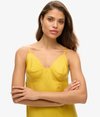 Dieses Cupro Trägerkleid ist ein echter Hingucker im Sommer und setzt ein Statement. Trage dazu weiße Sneaker und eine Jeansjacke für einen stylishen Look.