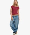 Das Athletic Off Shoulder Muster-Top verbindet sportlichen Einfluss mit femininem Charme. Der tief gerippte Ausschnitt verleiht dem schulterfreien Design eine subtile sportliche Note, während das zeitlose Muster und der Bardot-Ausschnitt einen schicken, vielseitigen Look schaffen. Mit zarten Flügelärmeln vollendet, bietet es einen mühelos durchdachten Stil für den Alltag.