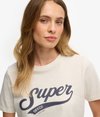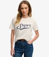 Unser Varsity Script T-Shirt verbindet perfekt Minimalismus mit Vintage-Stil. Mit einem markanten Grafikdruck auf der Brust und hervorragender Qualität wertet es deine lässig-eleganten Outfits auf.