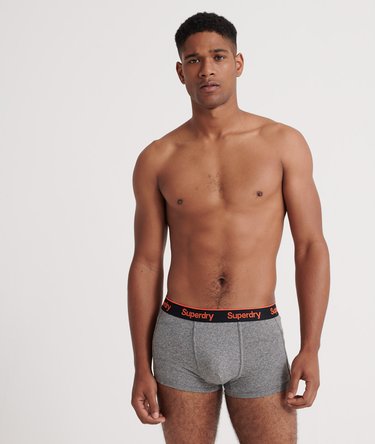 Superdry Sport Boxershorts für Herren aus der Orange Label Kollektion. Diese klassisch geschnittenen Boxershorts sind aus mehreren Bahnen gefertigt und versprechen höchsten Tragekomfort. Sie haben einen logoverzierten Bund mit einem kleinen Superdry Logoetikett hinten. Abgerundet wird das Modell mit der charakteristischen orangefarbenen Ziernaht am Seitensaum.