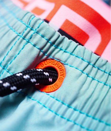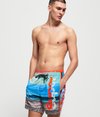Superdry Volley Badeshorts mit Foto-Design für Herren. Diese klassischen Badeshorts haben einen Kordelzug in der Taille, zwei Fronttaschen und eine Gesäßtasche mit Reißverschluss. Hinzu kommen ein Netzeinsatz und ein doppellagiger Bund mit Superdry Logo. Ein Superdry Logo läuft um ein Bein herum.