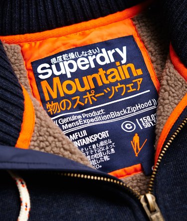 Superdry Expedition Kapuzenjacke für Herren. Eine schwere Kapuzenjacke mit geripptem Innenkragen und durchgehendem Innenfutter in Rumpf und Kapuze. Außerdem ist die Jacke mit einem Reißverschluss, zwei Reißverschlusstaschen vorn und Daumenlöchern in den gerippten Ärmelbündchen versehen. Vervollständigt wird das Design der Expedition Kapuzenjacke durch einen Superdry Mountain-Logoaufnäher am Ärmel.