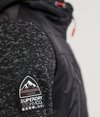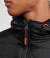 Superdry Storm Hybrid Kapuzenjacke für Herren. Diese langärmelige Kapuzenjacke sieht wie ein Hoodie und eine ärmellose Weste in einem aus. Mit Reißverschluss sowie Kapuze und Saum mit Kordelzug für warmen Tragekomfort. Außerdem verfügt sie über zwei Brusttaschen und Fronttaschen mit Reißverschluss. Ein Superdry Logoetikett an der Kapuze und ein gummierter Logoaufnäher auf einem Ärmel runden das Design ab.