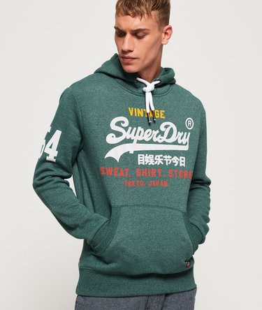 Superdry Sweat Shirt Store Hoodie für Herren. Dieses Hoodie ist ein wahres Kombitalent und ergänzt wunderbar jeden lässigen Freizeit-Look. Es präsentiert sich mit einem strukturierten Superdry Logo im Brustbereich, einem Nummernlogo am Ärmel und einer Kapuze mit Kordelzug. Gerippte Abschlüsse an Bündchen und Saum sorgen für eine figurschmeichelnde Passform. Auf der Vorderseite ist eine Tasche angebracht, in der du Schlüssel und Handy aufbewahren kannst. Die charakteristische orangefarbene Superdry Ziernaht an einer Seite und ein Superdry Etikett an der Tasche vervollständigen das Design. Dieses Hoodie lässt sich das ganze Jahr hindurch tragen und mit Jeans und Sneakern oder einer Hose und Stiefeln zu einem tollen Saison-Outfit kombinieren.