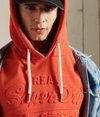 Dieses Loopback-Hoodie präsentiert sich im Vintage-Stil mit geprägter Grafik im Brustbereich.