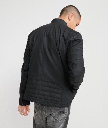 Superdry Carbon Bikerjacke für Herren. Diese Jacke verfügt über einen doppelten Reißverschluss mit Druckknopfverschluss am Kragen, vier Reißverschlusstaschen, Reißverschlüsse an den Bündchen und eine Innentasche mit Druckknopfverschluss, in der deine Wertgegenstände aufbewahrt werden können. Ein dezenter Superdry Logoaufnäher auf einem Ärmel vervollständigt das Design.