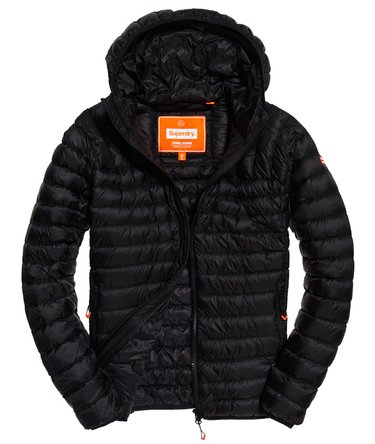 Superdry Core Daunenjacke mit Kapuze für Herren. Diese leichte Jacke mit Kapuze ist perfekt für die Übergangsmonate. Sie verfügt über eine hochwertige 90/10-Füllung aus Entendaunen, die wunderbar isoliert. Das Modell weist einen vorderseitigen Reißverschluss, elastische Abschlüsse an Ärmelbündchen und Saum sowie zwei vorderseitige Reißverschlusstaschen auf. Ein gummierter Superdry International Logoaufnäher am Ärmel rundet das Design ab.