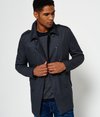 Superdry Rogue Regenmantel für Herren. Etwas kürzerer, zweireihiger Regenmantel im klassischen Design mit Druckknopfverschluss an den beiden großen vorderen Taschen. Im durchgehenden Innenfutter des Rogue Regenmantels verbirgt sich eine weitere Tasche. Dezente Superdry-Logoetiketten aus Metall an Tasche und Ärmel vervollständigen das Design.