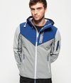 Superdry Sport Blocker Jacke für Herren. Diese Jacke ist perfekt zum Überziehen nach dem Training. Sie hat einen Frontreißverschluss, eine Kapuze mit Kordelzug und drei Fronttaschen. An den Ärmeln laufen Streifen hinunter und im Rücken sind Belüftungseinsätze angebracht. Superdry Sport Designs auf Ärmel, Rücken und Leiste runden das Modell ab.