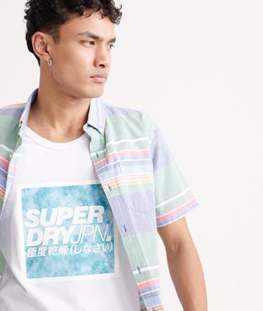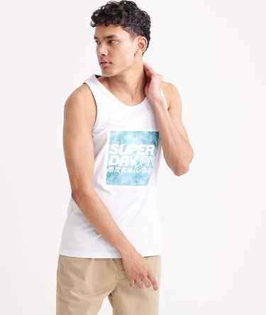 Superdry Japan Tie Dye Trägerhemd mit Blockfarben für Herren. Dieses Trägerhemd präsentiert sich mit gerippten Trägern und einer Superdry Logografik mit Batikdesign auf der Brust. Trage dazu Jeans und Sneaker für einen lässigen Auftritt.