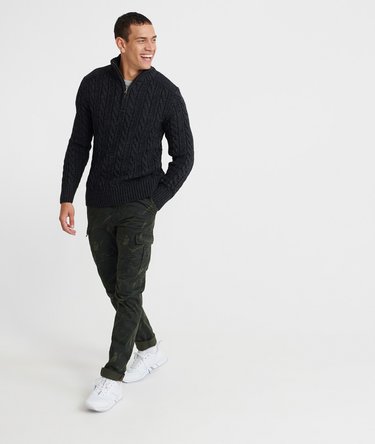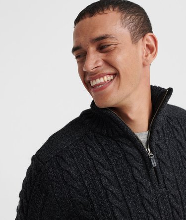 Superdry Jacob Henley Pullover für Herren. Bring frischen Wind in deine Garderobe mit diesem Henley Pullover mit halblangem Reißverschluss und gerippten Abschlüssen an Ausschnitt, Bündchen und Saum. Ein Superdry Logoaufnäher auf einem Ärmel vervollständigt das Design.