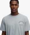 • Gerippter Rundhalsausschnitt mit Grafikdruck auf der Brust