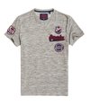 Superdry T-Shirt mit Aufnäher für Herren. Ein klassisches Kurzarm-T-Shirt mit Rundhalsausschnitt und mehreren Superdry Aufnähern im Retro-Stil auf Brust und Ärmel.
